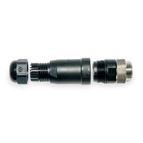 Connector, External Thread, Male, Plug End Straight, Number of Conductors 3, Number of Poles 3, Max Wire Size 24 AWG, Voltage 600 AC, Voltage 600 DC, Amps AC 13, 7/8-16 Threads, Face Dia 1 In, Single Keyway, Material Polyurethane, Black, NEMA Rating 6P, Standards UL, IEC