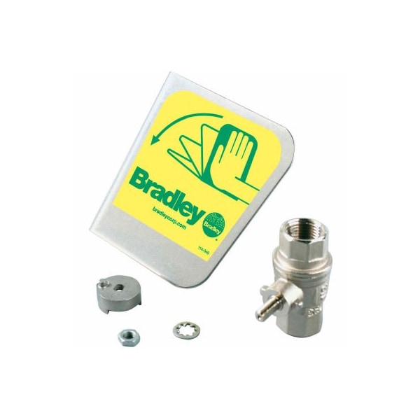 Bradley s30-070 1/2" ball valve/handle prepack, stainless steel handle kit replacement 1/2" ball valve and handle includes stainless steel handle with hardware and 1/2" npt stay open ball valve for use with bradley safety showers and eyewash units.