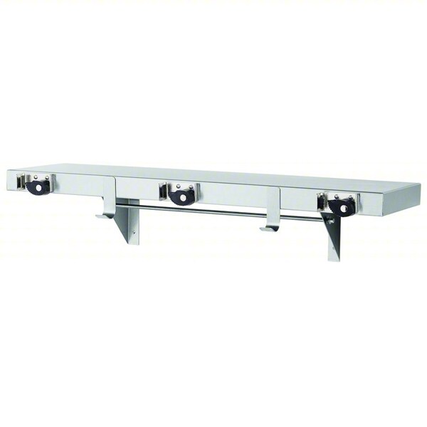 Utility Shelf, Product Type Utility Shelf, Mounting Type Exposed, Overall Height 6 5/8 in, Overall Width 36 in, Overall Depth 8 in, Material Stainless Steel, Finish Satin, Weight Capacity 5 lb, Center to Center Hole Distance 22 7/8 in, ADA Compliant Yes, Includes Mounting Hardware Yes