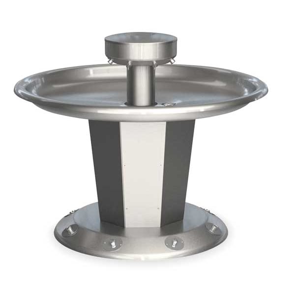Wash Fountain, ADA Compliance Yes, Back Splash Height Not Applicable, Bowl Depth 4 1/4 in, Bowl Length 54 in, Circular, Bowl Width 54 in, Non CEC Compliant, Silver, Connection Drain (In.) 1.5 in, Central Rising, Unfinished, 0.5 gpm, Gauge 14 ga, Floor, 8, Operating PSI Range 20-80, Overall Height 43 in, Overall Length 54 in, Overall Width 54 in, Bradley, Series Sentry, Stainless Steel, General Purpose, Foot Push Button, Water Inlet Connection Size 1/2 in, NPT