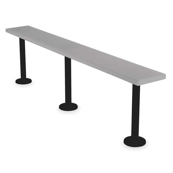 Pedestal Bench, Footplate Shape Round, Footplate Width 6 in, Pedestal Style Round Post, Post Depth Not Applicable, Post Width Not Applicable, Bench Top Depth 9 1/2 in, Bench Top Width 6 ft, Color Gray, Overall Height 19 in, Finish Matte, Material High Density Polyethylene