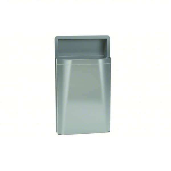 Trash Can, Half-Round, Open, 12 gal, Silver, Height 30 5/8 in, Width/Diameter 17 1/8 in, Depth 8 3/4 in, Metal, Stainless Steel, Satin, Stationary, No Lid, Not Applicable, None, Wall-Mounted