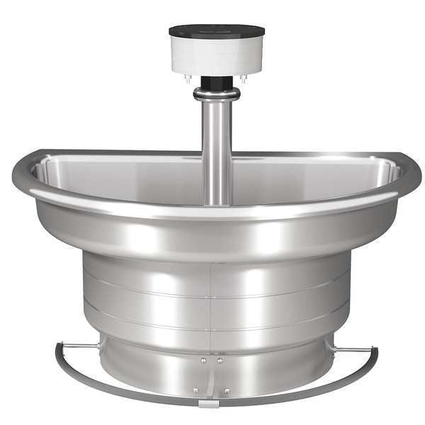 Wash Fountain, ADA Compliance No, Back Splash Height Not Applicable, Bowl Depth 9 in, Bowl Length 36 in, Semi-Circular, Bowl Width 25 3/4 in, Non CEC Compliant, Silver, Connection Drain (In.) 2 in, Central Rising, Supplied from Above, Unfinished, 1.25 gpm, Gauge 14 ga, Floor, 3, Operating PSI Range 20-80, Overall Height 42 3/8 in, Overall Length 25 3/4 in, Overall Width 36 in, Bradley, Series Stainless Steel Classic, Stainless Steel, General Purpose, Foot Push Bar