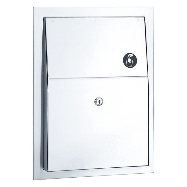 Sanitary Napkin Receptacle, Container Mounting Style Wall-Mounted, Height 17 in, Container Depth 4 in, Width 12 3/4 in, Material Stainless Steel, Shape Rectangular, Color Silver, Lid Type Self-Closing Push Flap, For Use With Mfr. No. P11-026