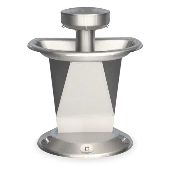 Wash Fountain, ADA Compliance Yes, Back Splash Height Not Applicable, Bowl Depth 4 1/4 in, Bowl Length 54 in, Semi-Circular, Bowl Width 26 in, Non CEC Compliant, Silver, Connection Drain (In.) 1.5 in, Central Rising, Unfinished, 0.5 gpm, Gauge 14 ga, Floor, 3, Operating PSI Range 20-80, Overall Height 44 in, Overall Length 26 in, Overall Width 54 in, Bradley, Series Sentry, Stainless Steel, General Purpose, Foot Push Button, Water Inlet Connection Size 1/2 in, NPT