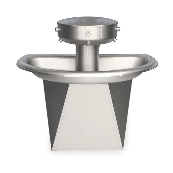 Wash Fountain, ADA Compliance Yes, Back Splash Height Not Applicable, Bowl Depth 4 1/4 in, Bowl Length 36 in, Semi-Circular, Bowl Width 26 in, Non CEC Compliant, Silver, Connection Drain (In.) 1.5 in, Off-Line Vent, Supplied from Above, Unfinished, 0.5 gpm, Gauge 14 ga, Wall, 3, Operating PSI Range 20-80, Overall Height 44 in, Overall Length 26 in, Overall Width 36 in, Bradley, Series Sentry, Stainless Steel, General Purpose, Hand Push Button, Water Inlet Connection Size 1/2 in, NPT