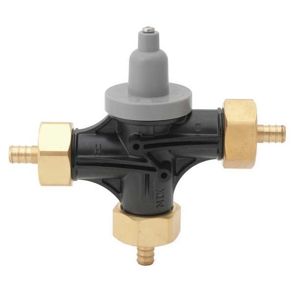 Thermostatic Mixing Valve, Body Material Glass-Filled PSU, Flow Rate 0.5 to 11 gpm, Inlet Type PEX, Outlet Type PEX, Inlet Size 1/2 in, Outlet Size 1/2 in, Temp. Range 59 Degrees to 140 Degrees F, Max. Pressure 125 psi, Overall Height 6 1/2 in, Overall Width 2 1/4 in, Inlet Temperature (Cold) 33 Degrees to 80 Degrees F, Inlet Temperature (Hot) 120 Degrees to 180 Degrees F, Standards ASME A112.1070, ASSE 1017, ASSE 1069, ASSE 1070, CSA B125.3, CSA B125.70, cUPC Listed, NSF/ANSI 372