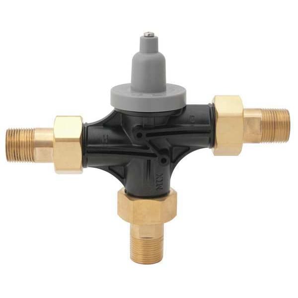 Thermostatic Mixing Valve, Body Material Glass-Filled PSU, Flow Rate 0.5 to 15 gpm, Inlet Type MNPT, Outlet Type MNPT, Inlet Size 3/4 in, Outlet Size 3/4 in, Temp. Range 59 Degrees to 140 Degrees F, Max. Pressure 125 psi, Overall Height 7 in, Overall Width 2 1/4 in, Inlet Temperature (Cold) 33 Degrees to 80 Degrees F, Inlet Temperature (Hot) 120 Degrees to 180 Degrees F, Standards ASME A112.1070, ASSE 1017, ASSE 1069, ASSE 1070, CSA B125.3, CSA B125.70, cUPC Listed, NSF/ANSI 372