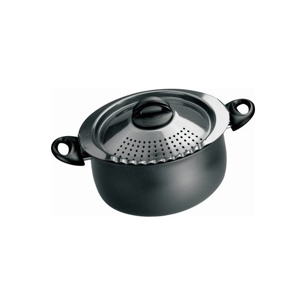Bialetti, 5 QT, Black, Pasta Pot, Oval Design Accommodates Noodles Without Breakage, Twist Lock Lid For Easy Straining, Aluminum Construction, NonStick Interior For Easy Clean Up, Stay Cool Handles, PFOA Free Nonstick Interior, Heat Resistant Handles, Italian Design, Straining Lid, Lid Features A Pout Spout For Convenient Straining Water From Vegetables Pasta, Cooking Pasta, Potatoes Or Vegetables Just Became A Whole Lot Safer