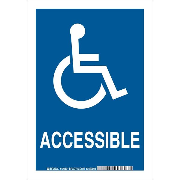 Facility Restroom Sign, Sign Subject Matter Facility, Height 10 In., Width 7 In., Sign Material Polyester, Sign Mounting Style Adhesive Surface, Header No Header, Legend Accessible, Printed Language English, Sign Shape Rectangle