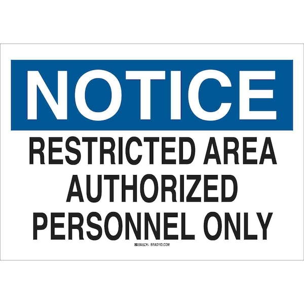 Admittance Sign, Sign Subject Matter Authorized Personnel and Restricted Access, Height 10 in, Width 14 in, Sign Material Fiberglass, Sign Mounting Style With Mounting Holes, Header Notice, Legend Restricted Area Authorized Personnel Only, Printed Language English, Sign Shape Rectangle