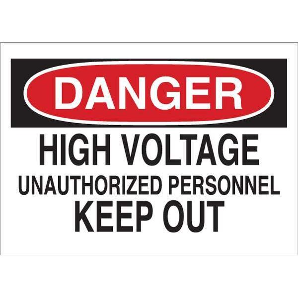 Admittance Sign, Sign Subject Matter Electrical Hazard, Height 7 in, Width 10 in, Sign Material Fiberglass, Sign Mounting Style With Mounting Holes, Header Danger, Legend High Voltage Unauthorized Personnel Keep Out, Printed Language English, Sign Shape Rectangle
