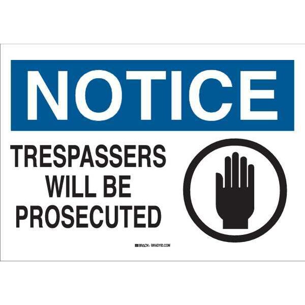 Admittance Sign, Sign Subject Matter Trespassing and Property, Height 7 in, Width 10 in, Sign Material Fiberglass, Sign Mounting Style With Mounting Holes, Header Notice, Legend Trespassers Will Be Prosecuted, Printed Language English, Sign Shape Rectangle