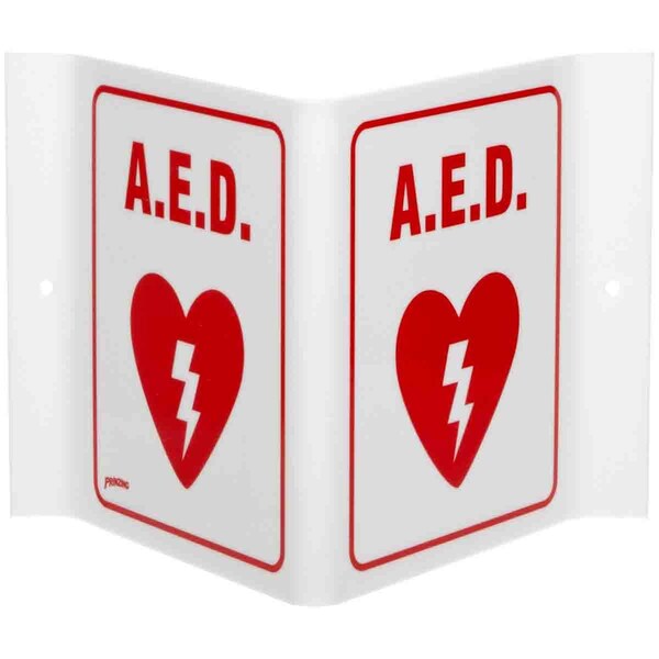 First Aid Sign, Sign Subject Matter Medical and Hospital, Height 6 In., Width 9 In., Sign Material Acrylic, Sign Mounting Style With Mounting Holes, Header No Header, Legend A.E.D., Printed Language English, Sign Shape Rectangle