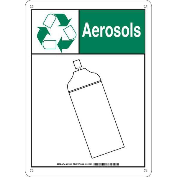Facility Sign, Sign Subject Matter Recycling, Height 14 In., Width 10 In., Sign Material Aluminum, Sign Mounting Style With Mounting Holes, Header Aerosols, Legend No Legend, Printed Language English, Sign Shape Rectangle