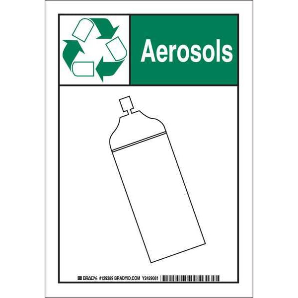 Facility Sign, Sign Subject Matter Recycling, Height 14 In., Width 10 In., Sign Material Polyester, Sign Mounting Style Adhesive Surface, Header Aerosols, Legend No Legend, Printed Language English, Sign Shape Rectangle