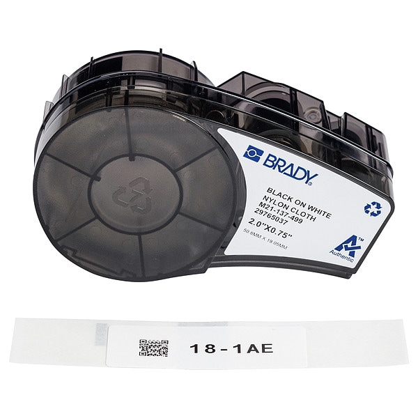 These pre-sized, high-adhesion nylon cloth labels (B-499) are highly pliable and ideal for tightly-curved surfaces such as vials, wires and cables. Matte white polyamide coated nylon cloth material has a permanent acrylic adhesive and is thermal transfer printable. Recommended for indoor use. UL approved; CSA accepted. Service temperature of -40 to 193 F (-40 to 90 C).