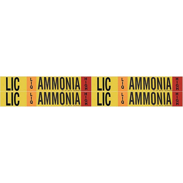 Ammonia Pipe Marker, LIC, 1 to 2-1/2In, PK4