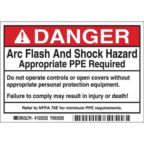 Arc Flash Protection Label, Horizontal Rectangle, Number of Printed Sides 1, English, Sign Legend Arc Flash And Shock Hazard Appropriate PPE Required Do Not Operate Controls Or Open Covers Without Appropriate Personal Protection Equipment, Sign Legend Style Symbol and Text, Package Quantity 5