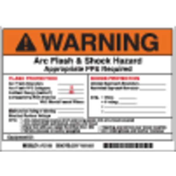 Permanent Adhesive Label, Horizontal Rectangle, Number of Printed Sides 1, English, Sign Format ANSI/OSHA Format, Sign Legend Arc Flash & Shock Hazard Appropriate PPE Required FLASH PROTECTION Arc Flash Boundary ___ Hazard Risk Category 3, Sign Legend Style Symbol and Text, Package Quantity 5