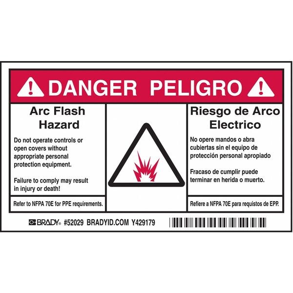 Arc Flash Protection Label, Horizontal Rectangle, Number of Printed Sides 1, English, Spanish, Sign Legend Arc Flash Hazard Do Not Operate Controls Or Open Covers Without Appropriate Personal Protection Equipment, Sign Legend Style Symbol and Text, Package Quantity 100