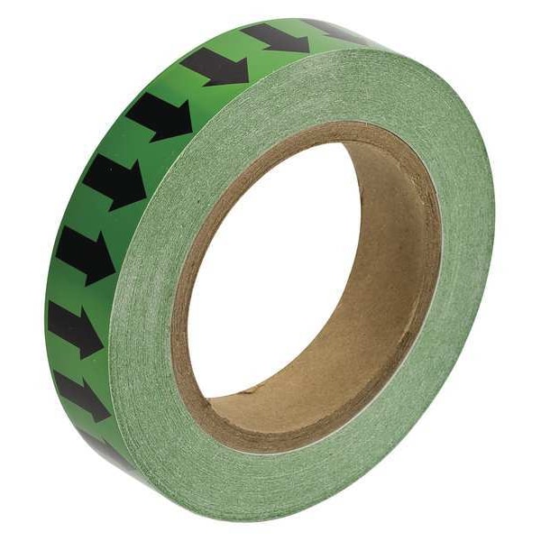 Arrow Tape, Pipe Marker Legend (Arrow), Legend Text Color Black, Background Color Green, Pipe Marker Mounting Style Adhesive Pipe Marker, Self-Adhesive Pipe Marker Format Roll Form, Continuous, Length 1,080 in, Width 1 in, Thickness 0.004 in, Roll Length 90 ft