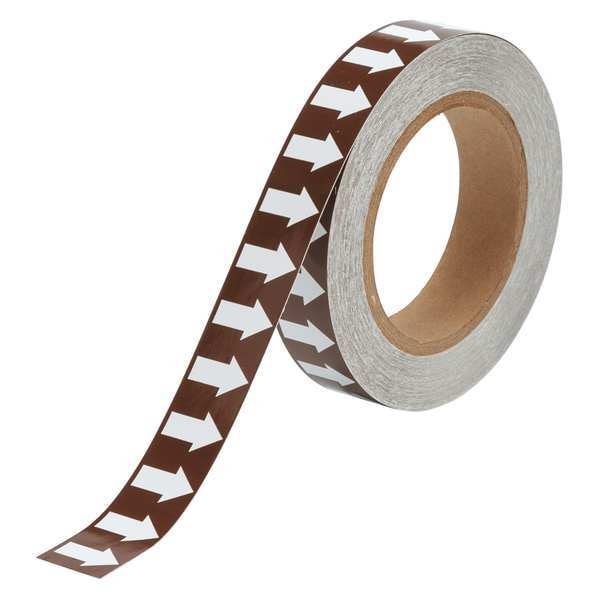 Arrow Tape, Pipe Marker Legend (Arrow), Legend Text Color White, Background Color Brown, Pipe Marker Mounting Style Adhesive Pipe Marker, Self-Adhesive Pipe Marker Format Roll Form, Continuous, Length 1,080 in, Width 1 in, Thickness 0.004 in, Roll Length 90 ft