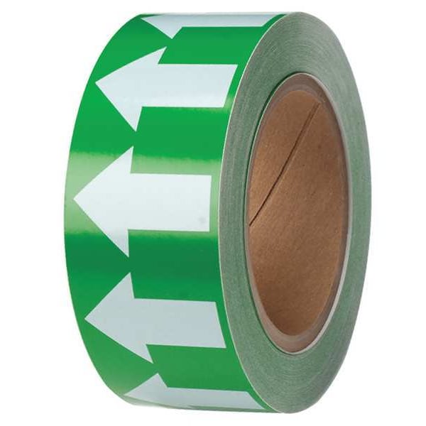 Arrow Tape, Vinyl, 2 in W x 90 ft. L, Adhesive Mounting, White/Green