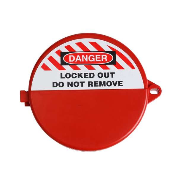 Ball Valve Lockout, Ball Valve Lockout Type Cylinder Cover, For Handle Type T-Handle, For Maximum Padlock Shackle Diameter 7/25 in, For Maximum Pipe Size 2 in, For Minimum Pipe Size 1 1/4 in, Maximum Number of Padlocks 1, Features Adjustable Slides to Ensure Proper Fit, Fits Most T-Handle Valves, Header Danger, Includes Label, Legend Danger Locked Out Do Not Remove, Lockout Color Red, Lockout Material ABS Plastic, Overall Depth 2 in