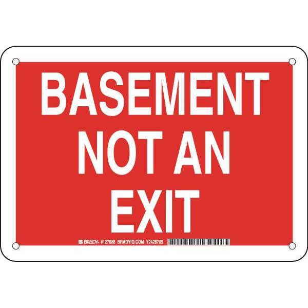 Facility Sign, Sign Subject Matter Facility, Height 7 In., Width 10 In., Sign Material Aluminum, Sign Mounting Style With Mounting Holes, Header No Header, Legend Basement Not An Exit, Printed Language English, Sign Shape Rectangle