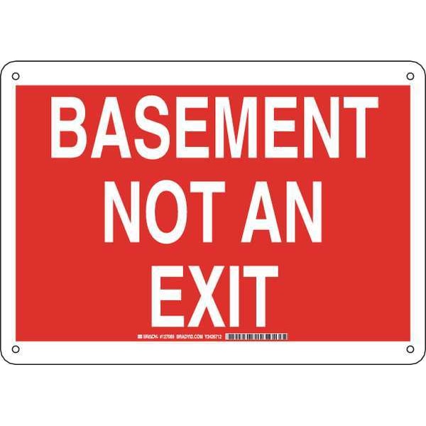 Facility Sign, Sign Subject Matter Facility, Height 10 In., Width 14 In., Sign Material Aluminum, Sign Mounting Style With Mounting Holes, Header No Header, Legend Basement Not An Exit, Printed Language English, Sign Shape Rectangle