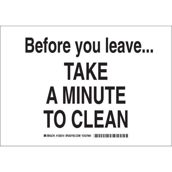 Facility Sign, Sign Subject Matter Cleaning and Maintenance, Height 7 In., Width 10 In., Sign Material Polyester, Sign Mounting Style Adhesive Surface, Header No Header, Legend Before You Leave... Take A Minute To Clean, Printed Language English, Sign Shape Rectangle