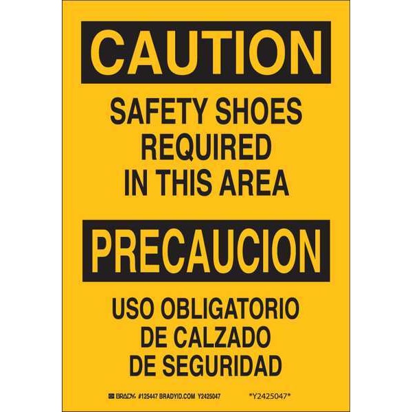 Safety Sign, Sign Subject Matter Personal Protection, Height 10 in, Width 7 in, Sign Material Aluminum, Header Caution/Precaucion, Legend Safety Shoes Required In This Area/Uso Obligatorio De Calzado De Seguridad, Printed Language English, Spanish, Sign Shape Rectangle