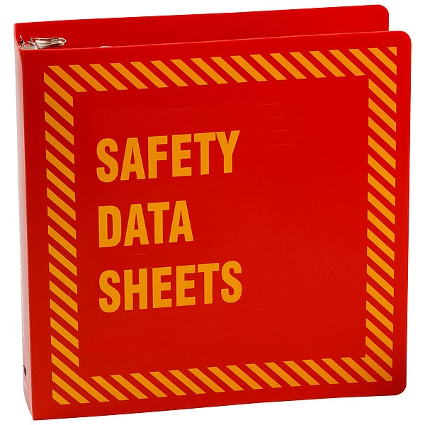 Binder, Binder Holder Material Polyethylene, Binder Material Not Applicable, Binder Ring Size 2 1/2 in, Document Storage Component Color Red, Yellow, Included Hardware (1) 36 in Chain, (1) Pair of Sheet Lifters, Included Supplemental Materials Not Applicable, Language English, Mounting Hardware Included No, Number of Binder Holders Not Applicable, Number of Binders Included 1, Overall Depth 3 1/4 in, Overall Height 11 in, Overall Width 3 in, Preprinted Text Material Safety Data Sheets