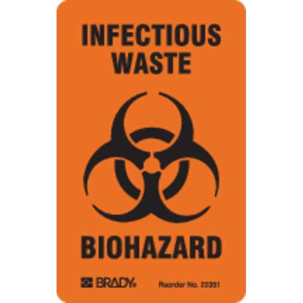 Biohazard Label, Vertical Rectangle, Number of Printed Sides 1, English, Sign Format Other Format, Sign Legend INFECTIOUS WASTE BIOHAZARD, Sign Legend Style Symbol and Text, Package Quantity 100