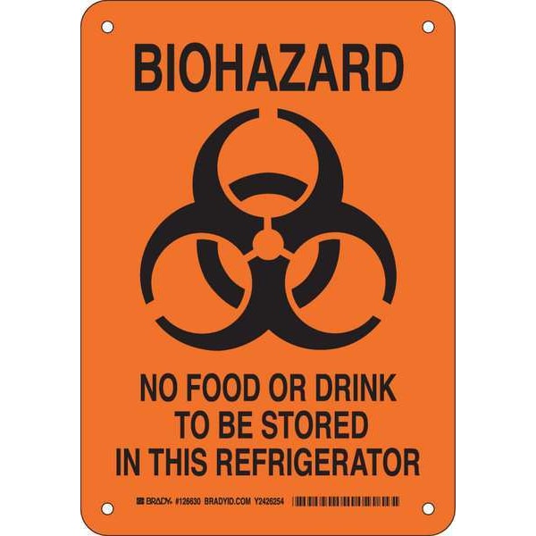 Biohazard Sign, Sign Subject Matter Biohazard, Height 10 in, Width 7 in, Sign Material Aluminum, Header No Header, Legend Biohazard No Food Or Drink To Be Stored In This Refrigerator, Printed Language English, Sign Shape Rectangle