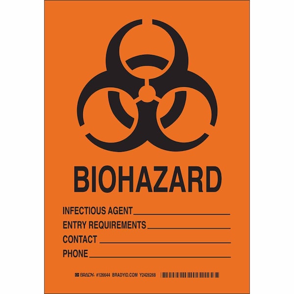 Biohazard Sign, 10 in H, 7 in W, Rectangle, English, 126642