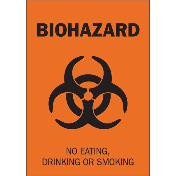 Biohazard Sign, Sign Subject Matter Eating and Drinking Restriction, Height 14 in, Width 10 in, Sign Material Fiberglass, Header Biohazard, Legend No Eating, Drinking Or Smoking, Printed Language English, Sign Shape Rectangle