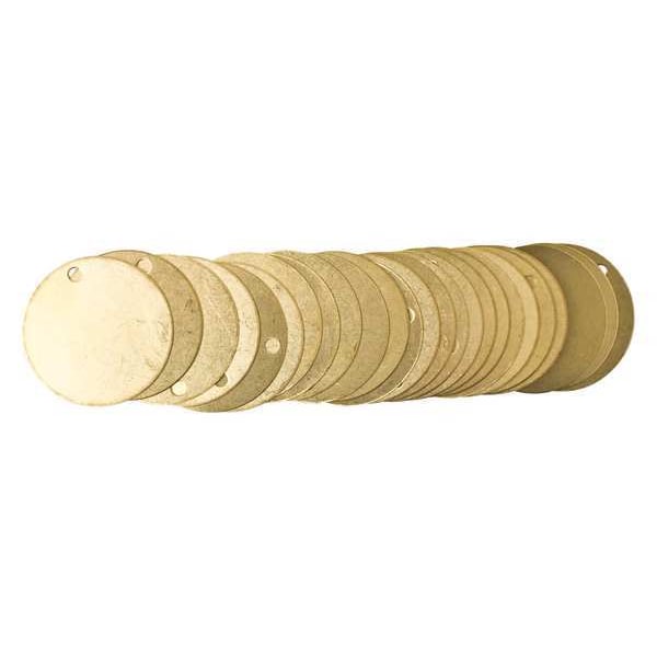 Blank Tag, Brass, 2 in H x 2 in W, 2 in Dia., Brass, Round, 25 PK