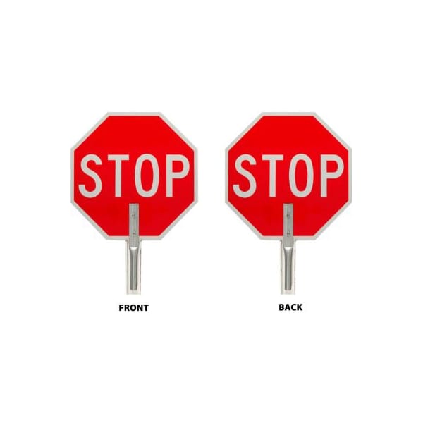 Brady 57755 traffic control paddle, 2 sided, stop sign, aluminum, 18"w x 18"h traffic control paddles are extremely durable providing years of on-the-job use. 12"l handle. Aluminum, white on red, 18 in h x 18 in w, stop traffic control paddle: aluminum, white on red, 18 in h x 18 in w, stop.