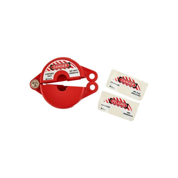 Brady 65560 Gate Valve Lockout, 1-1/2" to 2-1/2" Diameter With Danger Label, Polypropylene