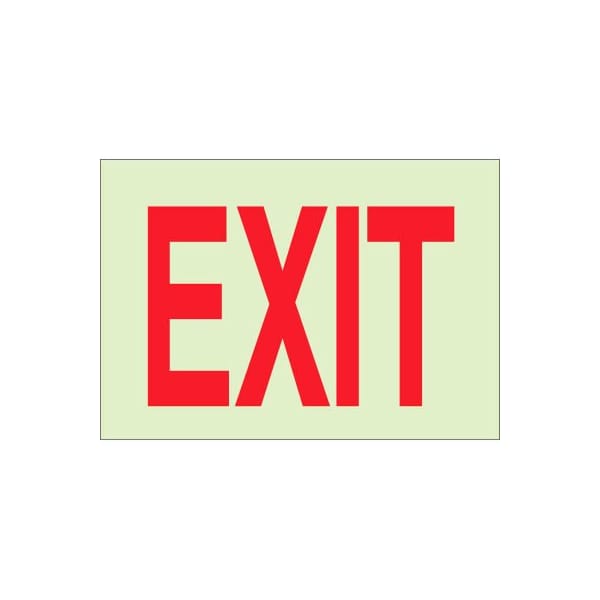 Brady 73510 bradyglo exit sign, self-adhesive, polyester, 14w x 10h the b-324 bradyglo material is a glow-in-the-dark pressure sensitive polyester. Bradyglo sign: polyester, red on glow, 10 in h x 14 in w, exit.