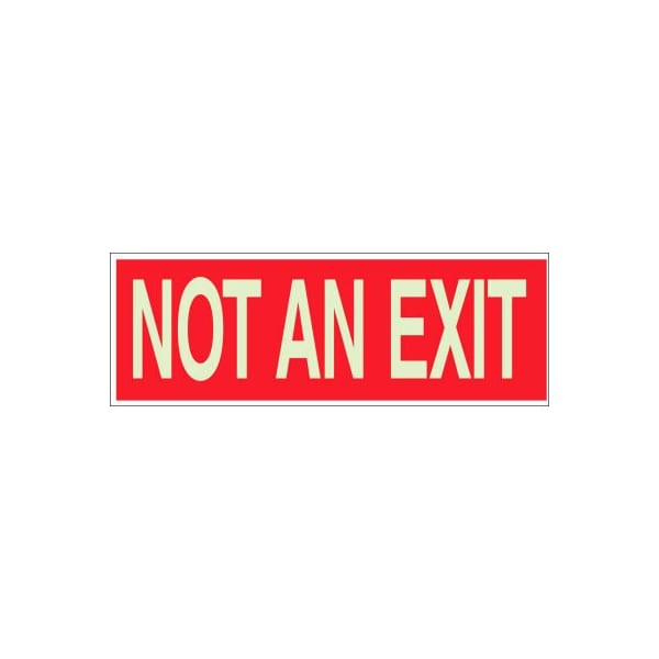 Brady BradyGlo Not An Exit Sign, Red on Glow in the Dark, Polyester, 10inW x 3-1/2inH