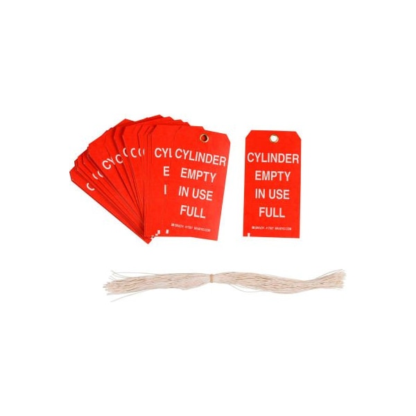 Brady 17927 cylinder empty in use full tag, 2 sided, 100/pkg, cardstock, 3w x 5-3/4h the excellent write-on surface of b-853 cardstock is ideal for adding on-the-spot customized notes and other information. Paper cardstock tags are recommended for indoor use only.