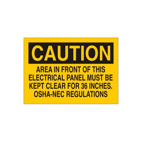 Brady 84827 electrical hazard caution sign, self-adhesive, polyester, 10w x 7h self-sticking polyester b-302 is a flexible polymer plastic over-laminated with a clear plastic coating to protect graphics against abrasion, sunlight, chemicals. Weathers up to 8 years outdoors, even longer indoors, and withstands wide temperature variations up to 230f. Flexible material conforms to most surfaces while protected graphics hold up to harsh environments, abrasion, and repeated spills and cleanings. Permanent, pressure sensitive adhesive forms a long-lasting bond to even the most difficult surfaces and shapes. Sign: polyester, black on yellow, 7 in h x 10 in w, caution: area in front of this electrical panel must be kept clear.