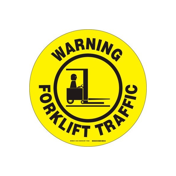 Brady Floor Warning Forklift Traffic Sign, Yellow/Black, Polyester, 17inDia