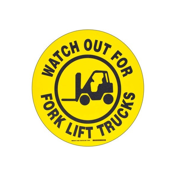 Brady Floor Watch Out For Fork Lift Trucks Sign, Yellow/Black, Polyester, 17inDia