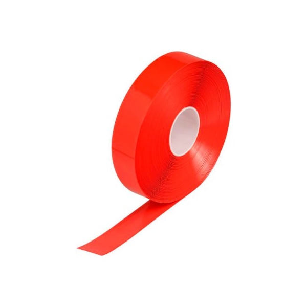 Brady 149634 toughstripe max floor marking tape, vinyl, 2"w x 100'l, red toughstripe max is designed to withstand wear and tear in high-traffic areas where sliding or dragging forces often occur. features visible floor-marking improves safety and organization in almost any industrial environment. high-gloss surface shines like new paint and withstands forklift traffic without tearing or lifting. ideal for marking aisles, passageways and storage locations and identifying equipment and egress paths. can be easily applied by one person working alone.