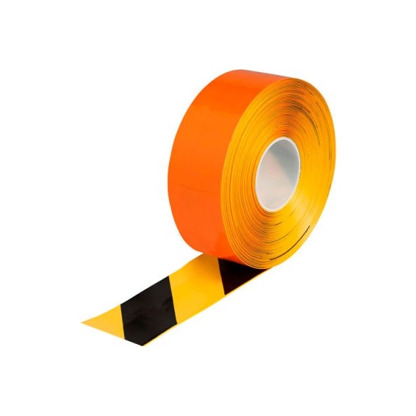 Brady 149637 toughstripe max floor marking tape, vinyl, 3"w x 100'l, blk/yellow stripe toughstripe max is designed to withstand wear and tear in high-traffic areas where sliding or dragging forces often occur. features visible floor-marking improves safety and organization in almost any industrial environment. high-gloss surface shines like new paint and withstands forklift traffic without tearing or lifting. ideal for marking aisles, passageways and storage locations and identifying equipment and egress paths. can be easily applied by one person working alone.