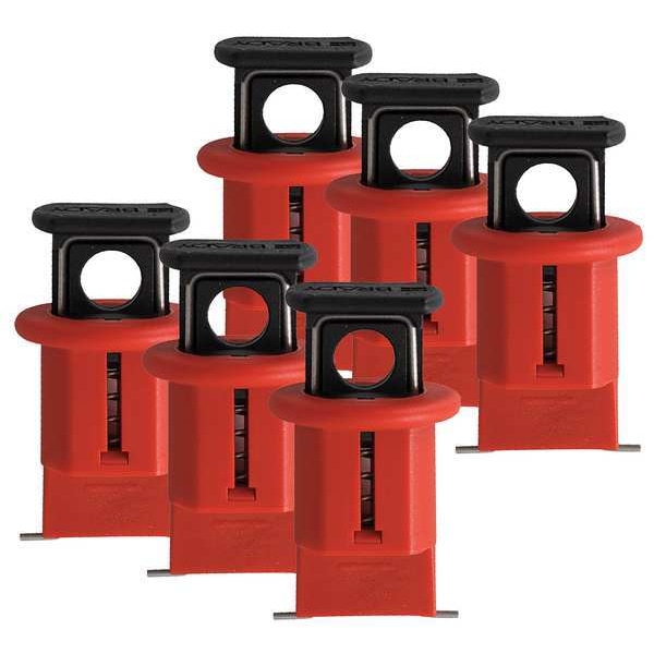 Circuit Breaker Lockout, Circuit Breaker Lockout Type Pin-Out, For Circuit Breaker Type Mini, For Maximum Padlock Shackle Diameter 9/32 in, For Voltage 120/277V AC, Maximum Number of Padlocks 1, Overall Height 1.64 in, Overall Length 0.56 in, Overall Width 0.83 in, Features Installed Using the Push Button, Requires No Tools for Installation, For Use With Multi-Pole Breakers, Push Button, Single-Pole Breakers, Lockout Color Red, Lockout Material Fiberglass Reinforced Nylon